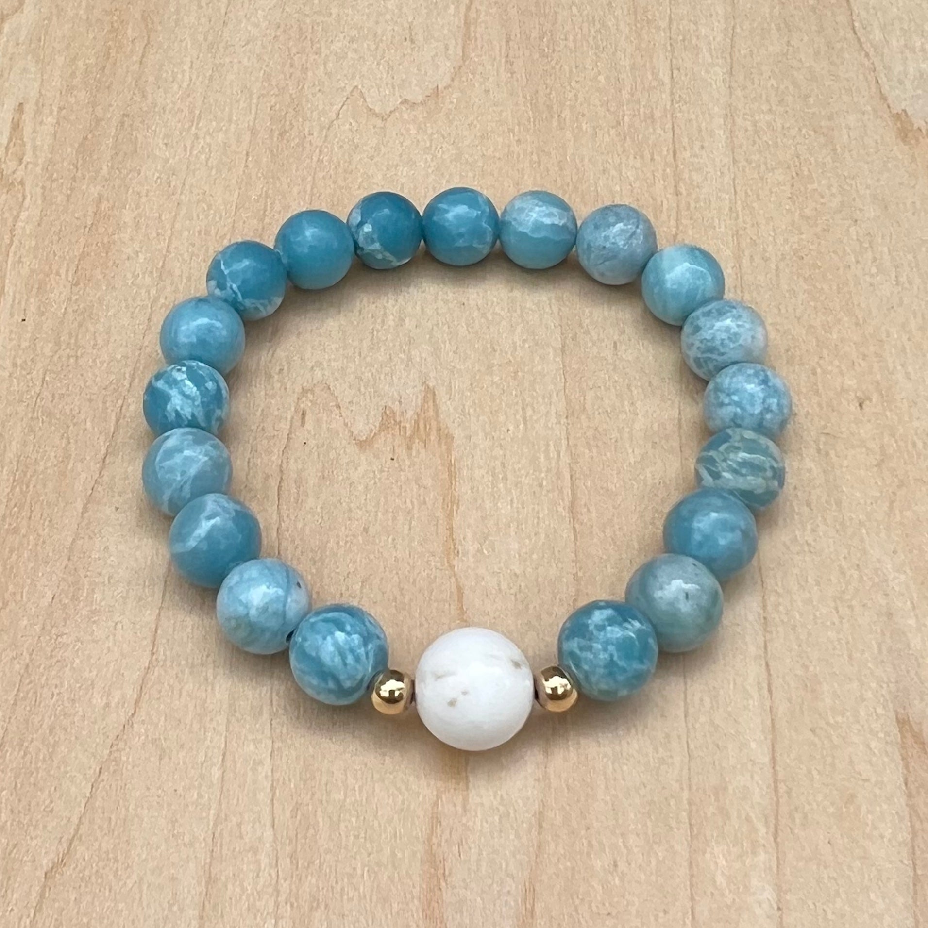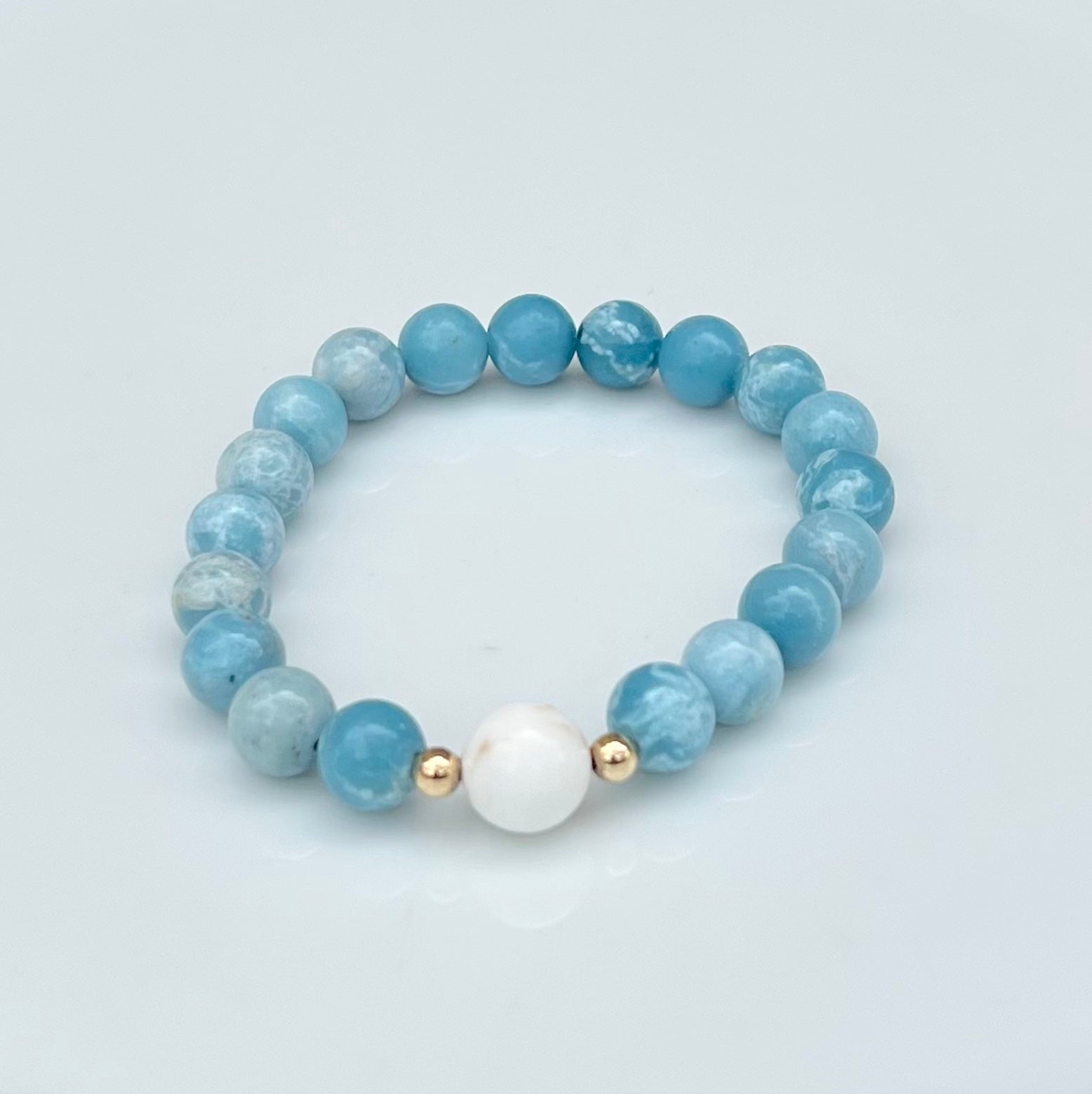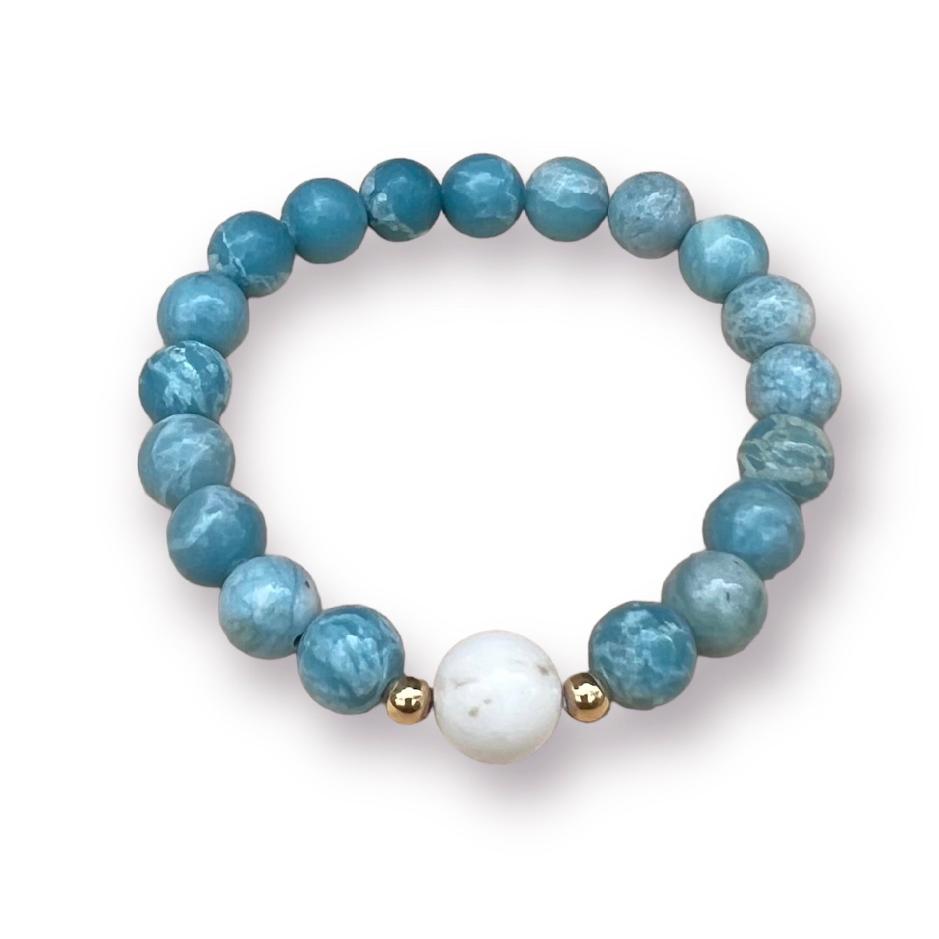 - 8mm Larimar and While Turquoise Bracelet